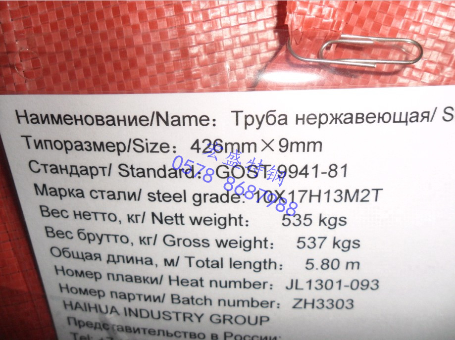 材料:10X17H13M2T   標(biāo)準(zhǔn):GOST9941-81 較高級(jí)